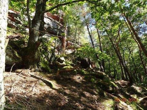 Wandertour mit Kuchenrezpet - Busenberger Holzschuhpfad in der Südwestpfalz mit Pflälzer Rieslingwein-Apfelkuchen
